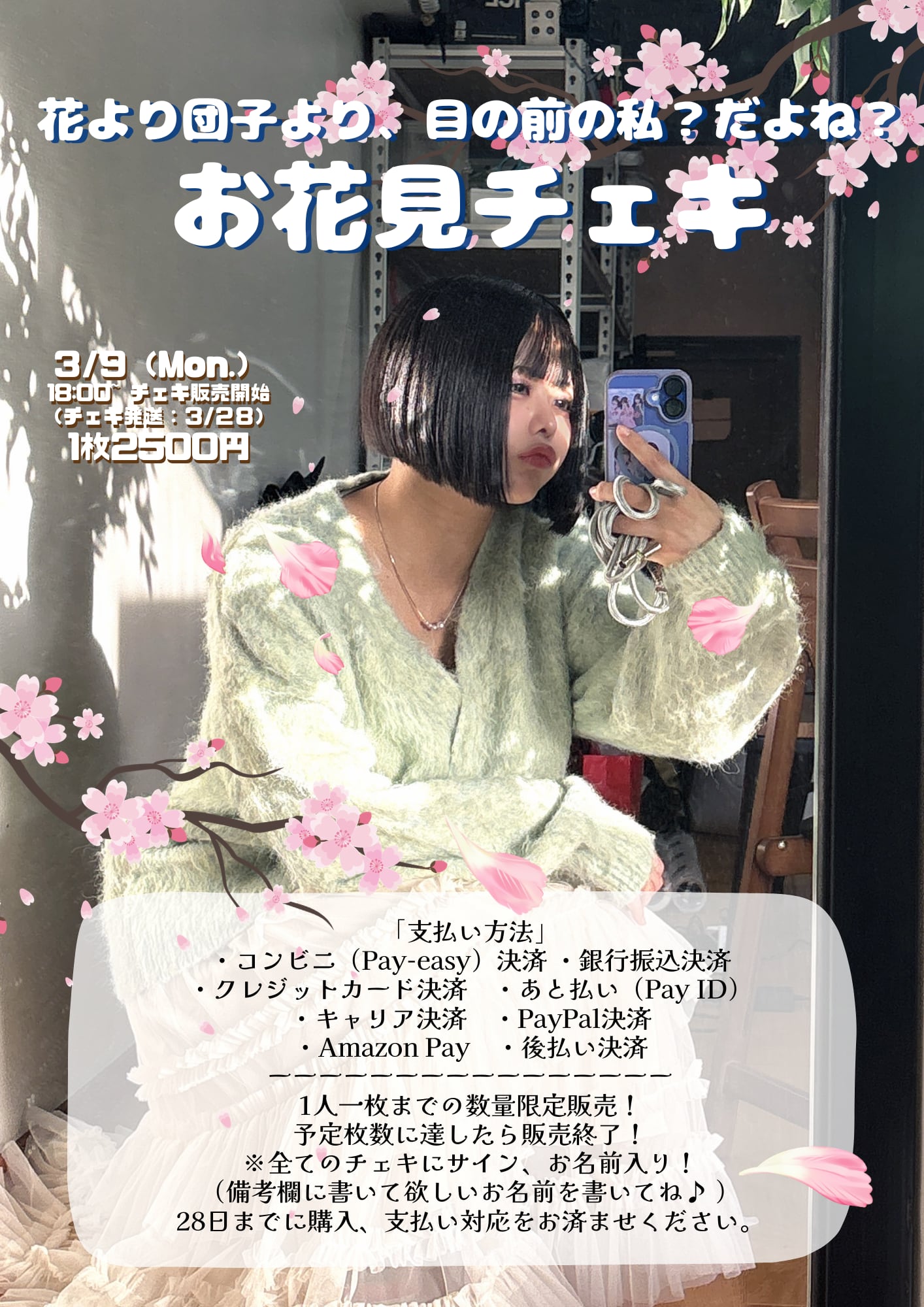 「花より団子より、目の前の私?だよね?お花見チェキ」
